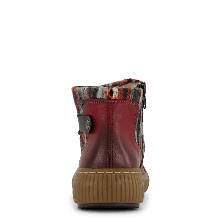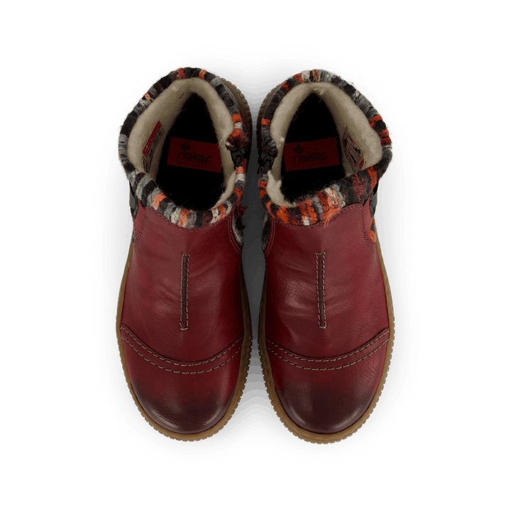 Flotte støvler i imiteret læder med farverig strikkrave. Udstyret med lynlås på indersiden og behagelig gummisål.
