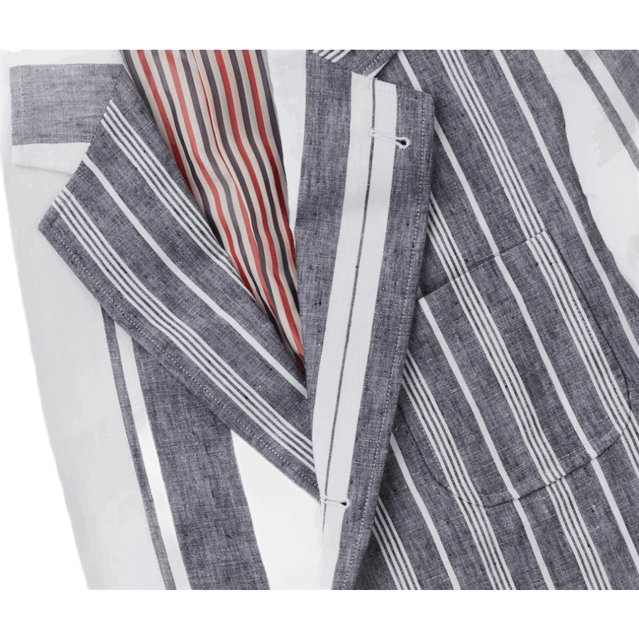 Patch Pocket Sack: Das charakteristische Detail von Thom Browne, aktualisiert in einer schwerelosen Wollmischung für den Herbst. Gefertigte Viertelärmel für eine maßgeschneiderte Passform mit zwei Leistentaschen und dem charakteristischen Intarsien-Strickstreifen.