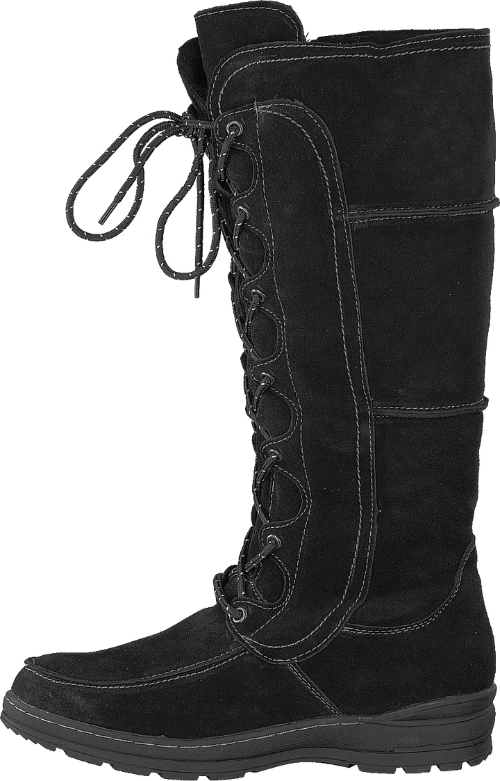 Highboots in black suede, warm-lined with a rubber outsole. The perfect boots for the winter.