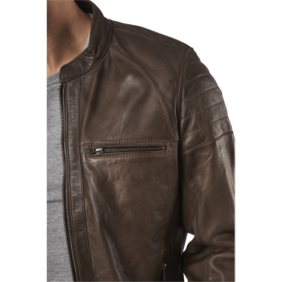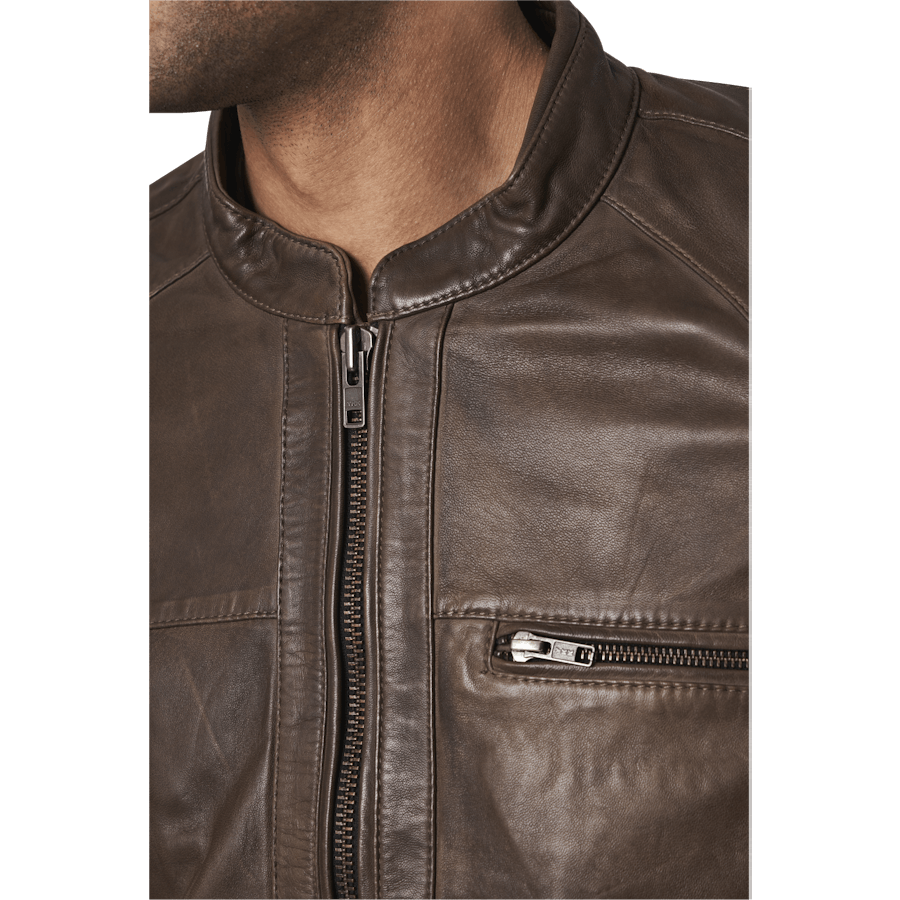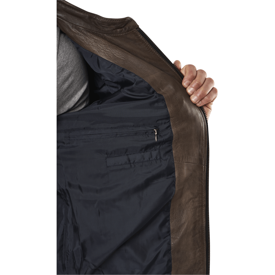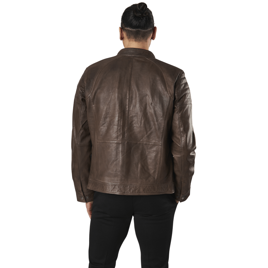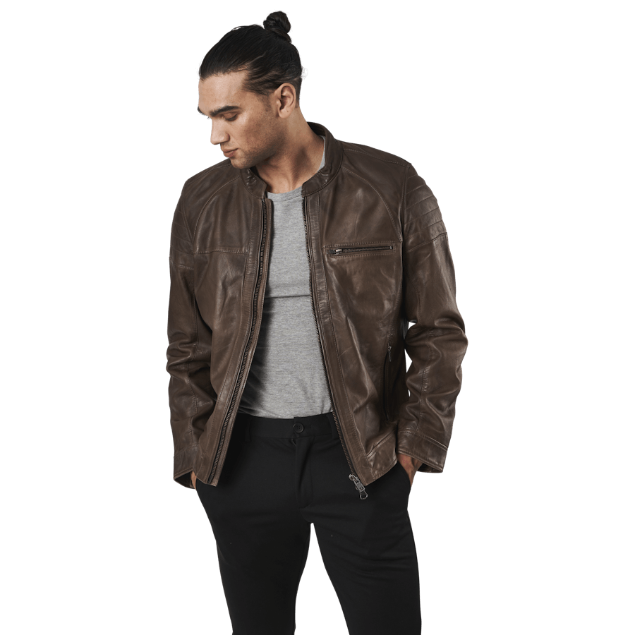 See jope on stiilne nahktagi. Valmistatud 100% nahast ja vooderdatud polüestriga. See jope on kerge ja seda on lihtne kanda. Pruun värv sobib enamiku riietega ja sobib suurepäraselt igapäevaseks kasutamiseks.