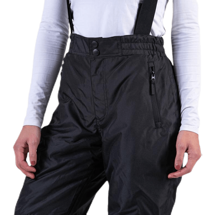 Mukavat peittohousut tuulta ja vettä hylkivästä materiaalista, jotka sopivat ihanteellisesti hiihtoon ja muihin talviaktiviteetteihin. Pehmeä polyesteritäyte pitää lämmön hyvin myös kylminä talvipäivinä. Joustavan vyötärön ansiosta housut istuvat mukavasti paikoilleen, ja irrotettavilla olkaimet varmistavat, etteivät ne luista alas. Housuissa on lumipeite ja lahkeensuissa voidaan säätää tarranauhalla.