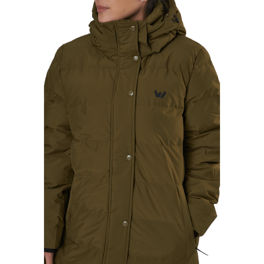 Joan W Long Puffer -takki, joka sopii täydellisesti kerrospukeutumiseen kylminä aamuina. Se sopii myös asioiden hoitamiseen tai vaikka vain nopeaan kävelyyn. Pitkät hihat pitävät sinut lämpimänä kylmimmässä tuulessa. Lisäksi vyötärönauha on joustava, mikä tarkoittaa, että se antaa sinulle räätälöidyn ilmeen ja tuntuman.