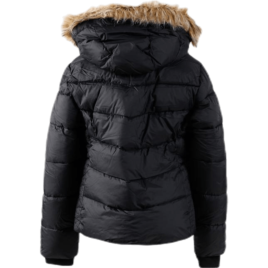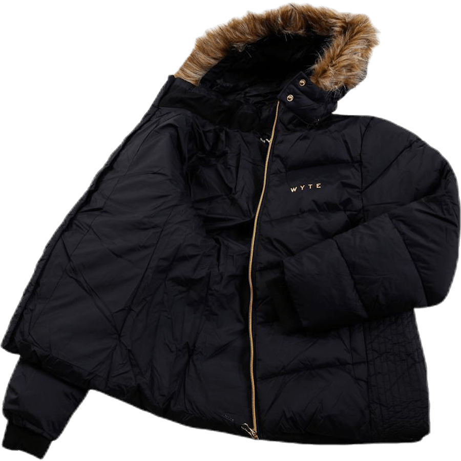 WYTE Junior Veste d'hiver avec une belle coupe et de jolis détails. Capuche amovible avec fausse fourrure également amovible. La doublure intérieure bordeaux et la fermeture éclair et les boutons dorés créent de jolis contrastes avec le tissu extérieur noir. Deux poches latérales avec fermeture éclair. Le rembourrage DuPont et le tissu extérieur avec revêtement hydrofuge signifient que la veste convient même les jours d'hiver les plus froids. Sans fluorocarbures, PFOA et PFOS. Matière : Tissu extérieur : 100 % polyester. Doublure intérieure : 100 % polyester. Rembourrage : 100 % polyester.