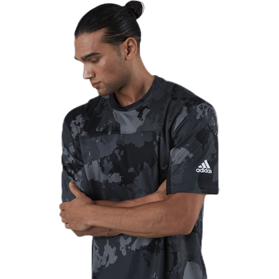 Una maglietta da allenamento adidas con tessuto che assorbe l'umidità. È inutile aspettare che la fortuna faccia il lavoro. Fai un piano, poi inseguilo con questa t-shirt da allenamento adidas. La sensazione morbida ed elastica ti mantiene motivato quando sei a metà di un allenamento ad alta intensità. La stampa mimetica continentale celebra la capacità degli sport di unire il mondo.