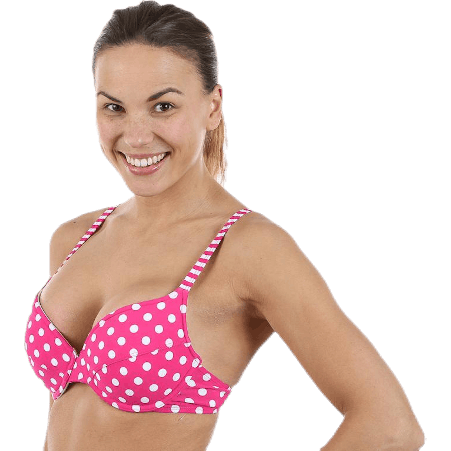 Top bikini con coppe imbottite. Spallacci regolabili, automatici sul retro e imbottitura removibile. Materiale: 82% nylon, 18% elastan.