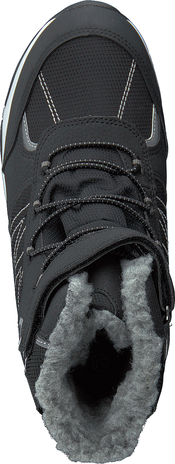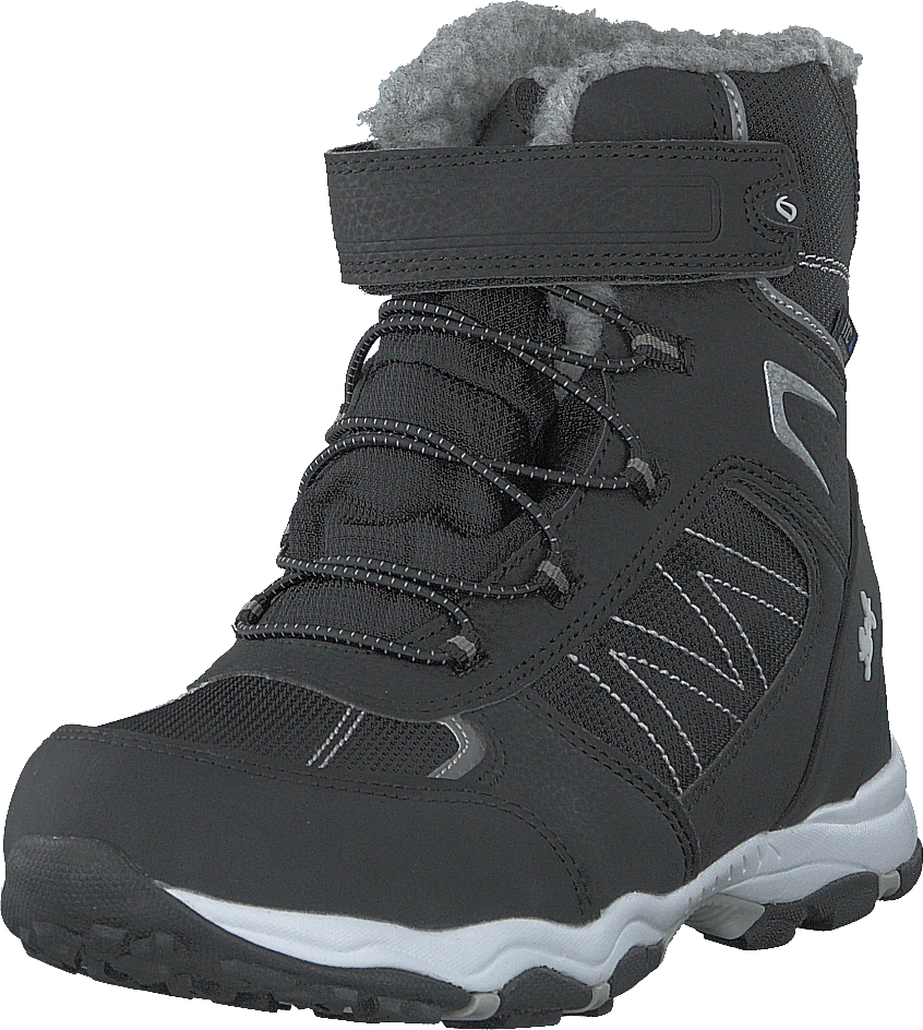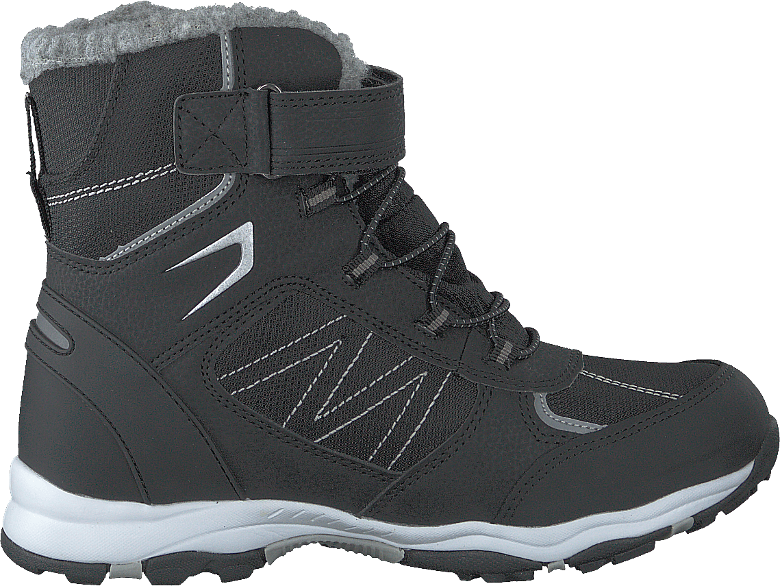 Stivale impermeabile per bambini in movimento. Calda fodera in teddy in misto lana e tecnologia ITC che mantiene le scarpe asciutte a lungo. Le scarpe sono dotate di una suola resistente e di lacci elastici più cinturini in velcro che facilitano la regolazione della calzata.