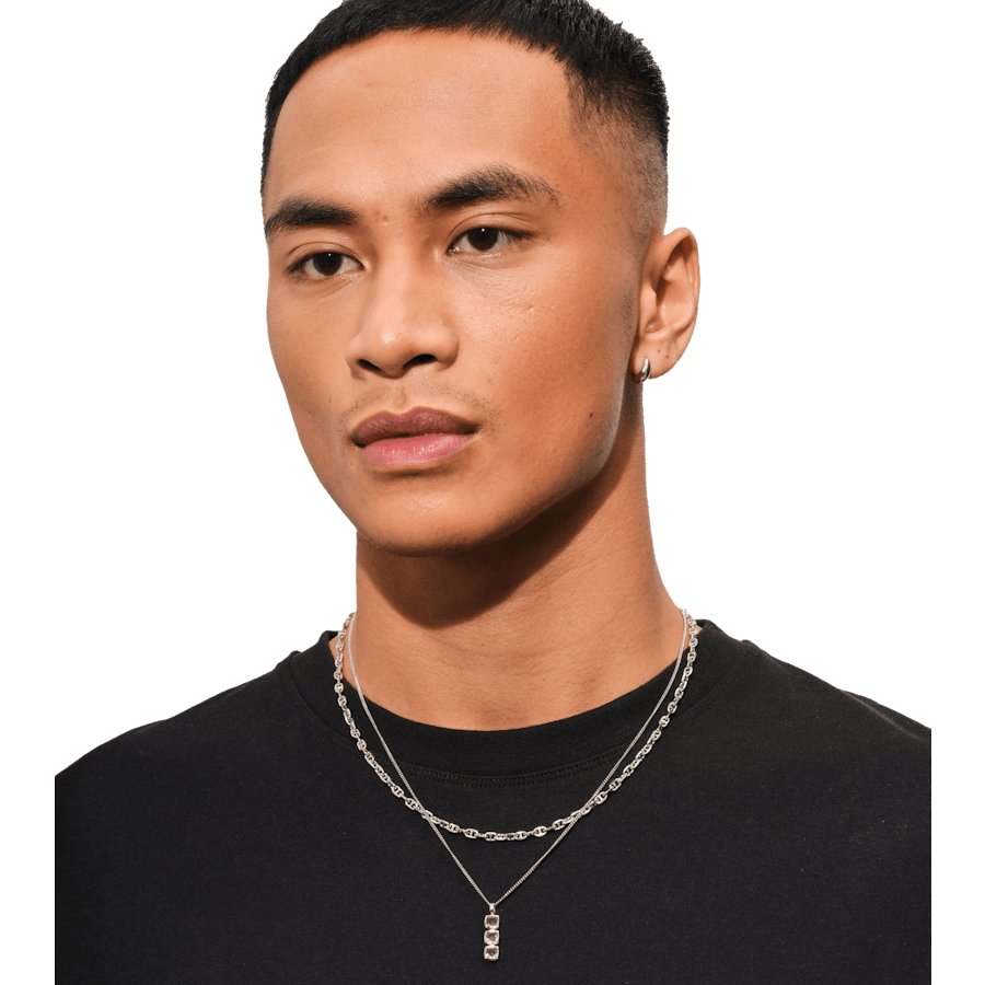 De ketting is gemaakt van massief 925 sterling zilver met een gepolijste afwerking, verguld met wit rhodium om het oppervlak te versterken en aanslag te voorkomen.