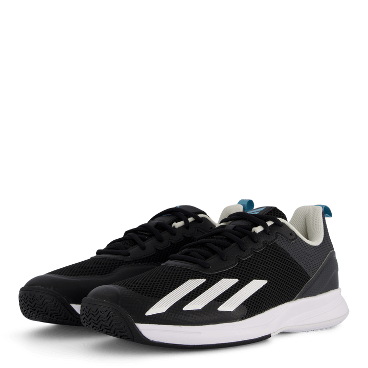 Courtflash Speed tennisskoene fra adidas er bygget for fart og ytelse på alle underlag. Med en slitesterk Adituff-tå og lett, pustende mesh-overdel holder de føttene kjølige og lar deg bevege deg fritt under intense kamper. Adiwear yttersåle sikrer utmerket grep for raske akselerasjoner.