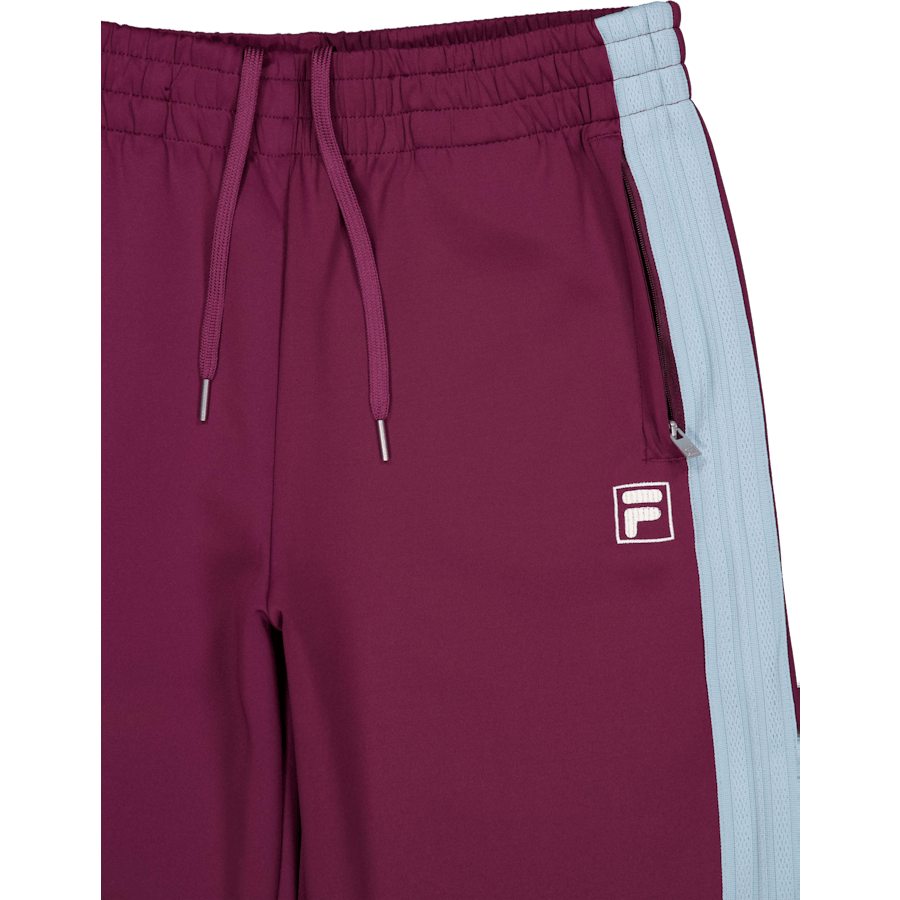 Luźne spodnie dresowe COMO z taśmą, haftowane logo F-box na lewej nogawce, kontrastowa taśma wzdłuż nogawki z tonacyjną i dotykową wersją klasycznego paska Fila, regulowana talia z ukrytymi sznurkami, kieszenie z zamkami błyskawicznymi, luźny krój z prostymi nogawkami, dopasowanie: luźne, 91,00% poliester | 9,00% elastan