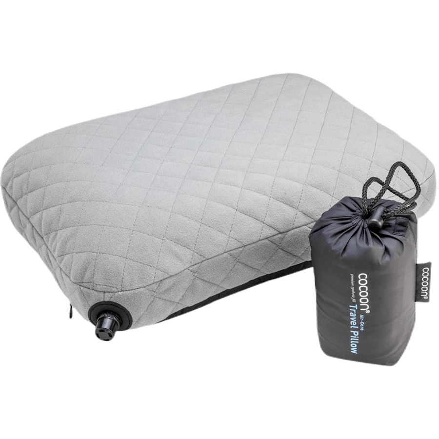 En lätt, kompakt resekudde med uppblåsbar, utbytbar luftkudde under ett lager av syntetisk fyllning och ett mikrofiber/nylonöverdrag. Storlek: 28 x 38 cm. Förpackningsstorlek: 11 x 8 cm. Vikt: 179 g