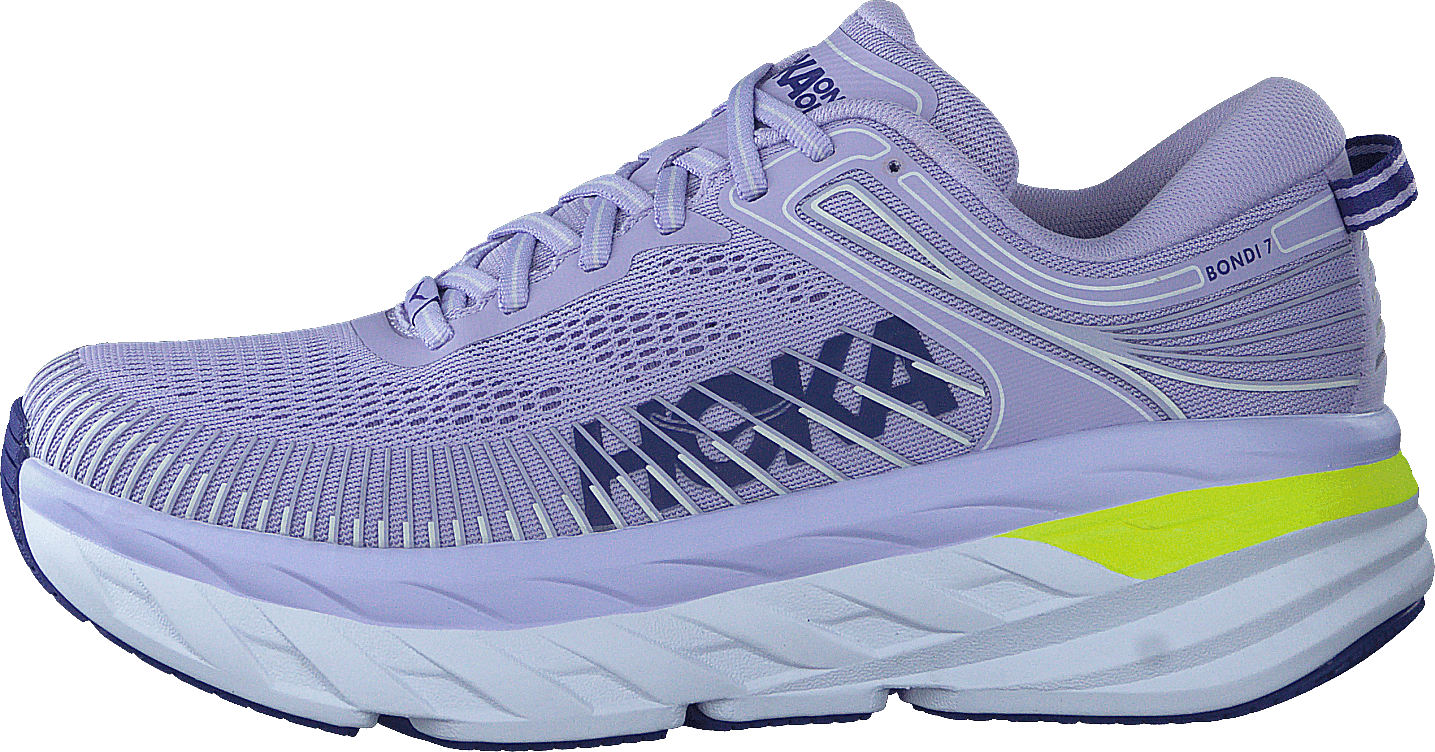 Den mest dämpade skon i HOKA road-shoe lineupen, den spelförändrande Bondi 7 ger en jämn, balanserad åktur över vilken sträcka som helst. Konstruerad med samma fulla EVA-mellansula, ventilerande mesh-överdel och signatur Meta-Rocker-teknik som sin föregångare, är Bondi 7 uppdaterad med en suveränt plysch krage. Tillverkad av ultramjukt minnesskum designat för att rymma en smalare häl, kragen anpassar sig till en mängd olika anklar, vaggar Achilles i mjuk komfort. Utan tvekan kommer Bondi 7 att ta dig långt och brett.