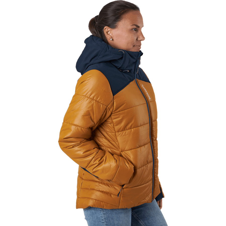 Carolina är en vadderad pufferjacka med en vattenavvisande finish. Låt jackan vara en del av din aktiva utomhuslivsstil. Den har en glänsande look och en matt yta, och ett stort logotyptryck på vänster ärm.
