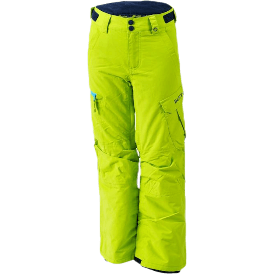 Estupendas calças cargo para criança da Burton em Dryride Durashell ¢ de 2 camadas e com forro Thermacore ¢. Logotipo Burton na perna, costuras totalmente coladas e espaço para crescer que permite que as calças sejam estendidas 1 tamanho. 10.000mm / 5.000g.